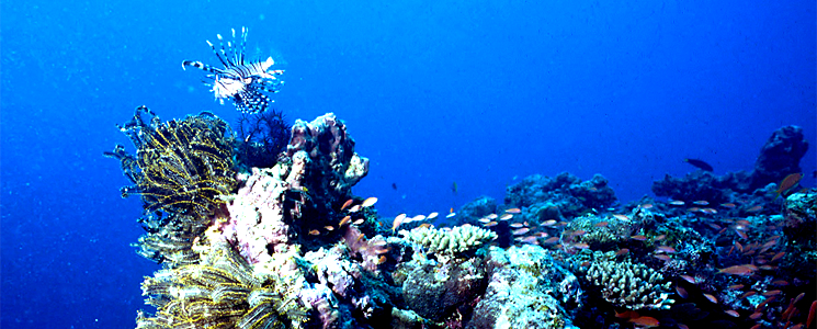 水深の浅い、綺麗なサンゴや魚のたくさんいるポイントで潜ります。